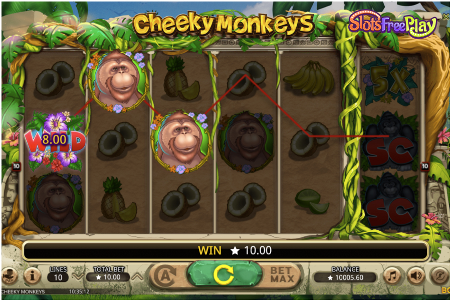 In the Cheeky Monkeys slot, the Wild symbol acts as a versatile and powerful icon, adding an extra layer of excitement to the gameplay. The Wild symbol can substitute for other regular symbols on the reels, helping players complete winning combinations. For instance, if you have two matching symbols on a payline along with a Wild symbol, the Wild will act as a substitute for the missing symbol, turning the combination into a winning one. Additionally, in some slots, including Cheeky Monkeys, Wild symbols may have their own payout values. Landing multiple Wild symbols on an active payline can result in substantial winnings, often offering higher payouts than regular symbols.