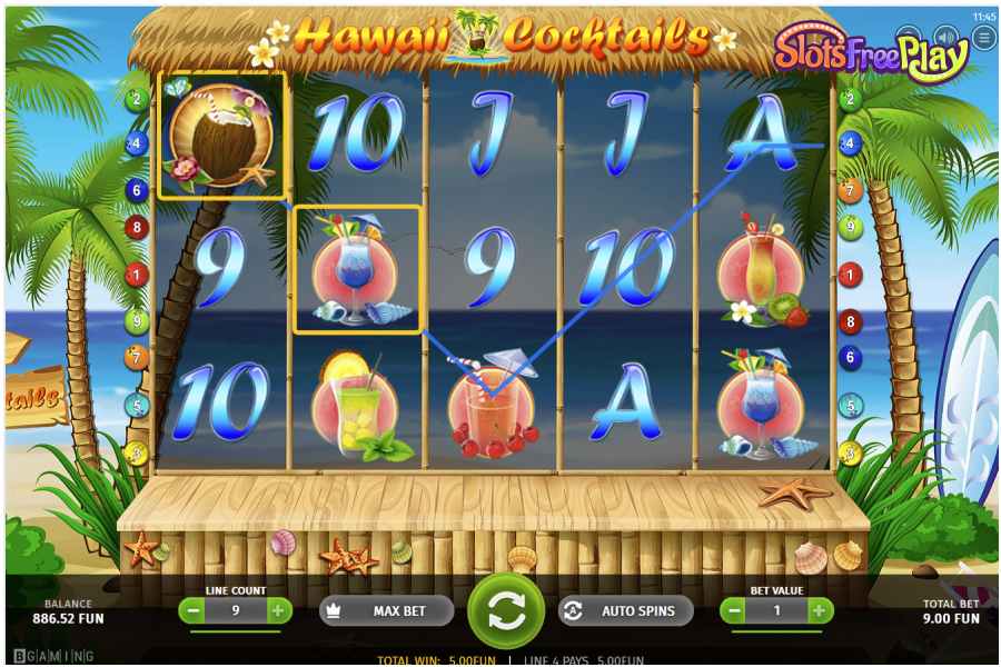 What makes "Hawaii Cocktails" truly unique are its captivating features. The Substitution Symbols feature allows symbols to act as versatile jokers, significantly increasing the chances of forming winning combinations. This dynamic element adds an extra layer of excitement to each spin. The Free Spins feature, a hallmark of engaging slots, enables players to spin the reels without depleting their balance, extending the gameplay and providing opportunities for increased winnings.