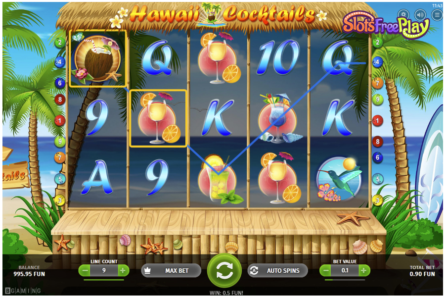 The bet range of 0.90 to 9 accommodates both casual players and high rollers, making "Hawaii Cocktails" accessible to a diverse audience. The slot's five reels come alive with Substitution Symbols, Free Spins, Multipliers, Scatter Symbols, and Wilds, providing a dynamic and engaging gameplay experience.